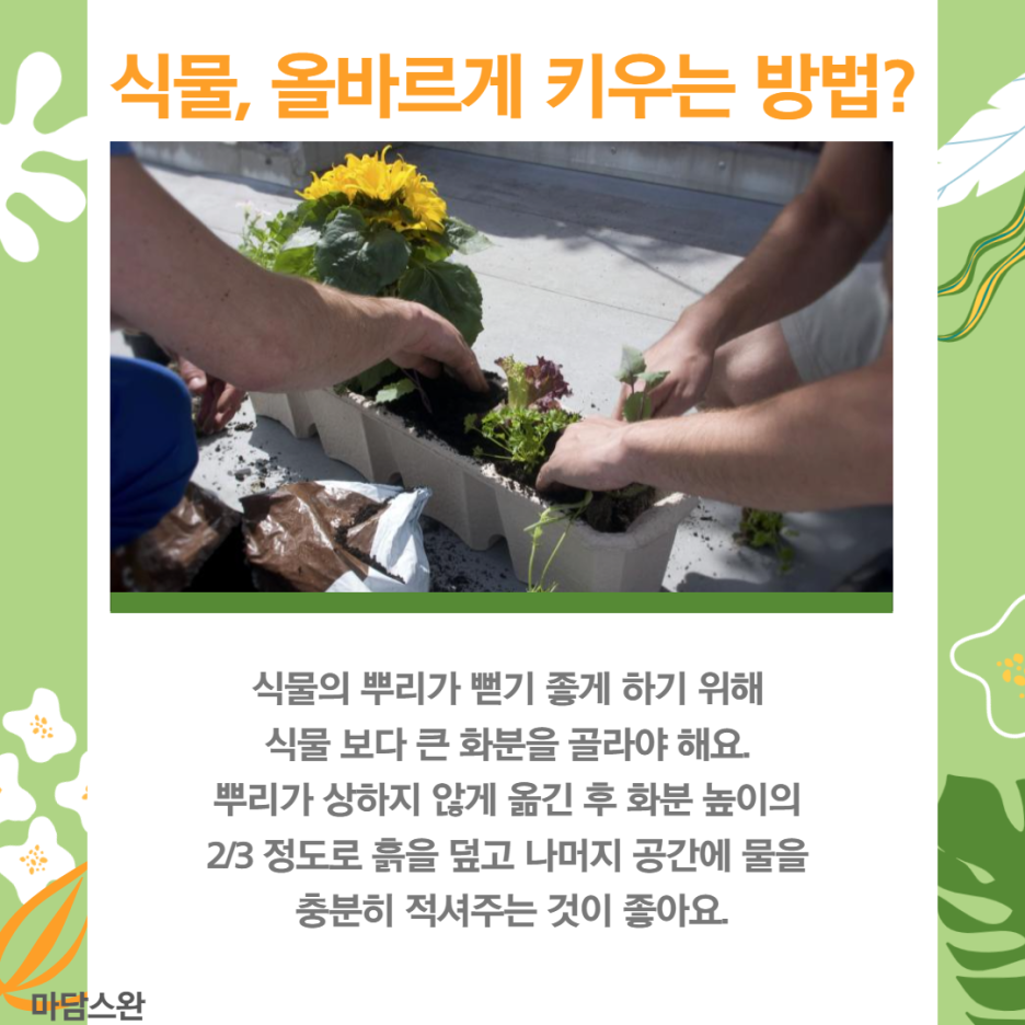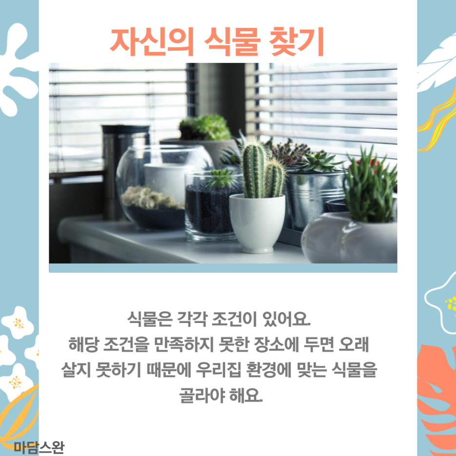 꾸준히 식물이 건강한지 확인하며 키우는 식물의 환경에 맞게