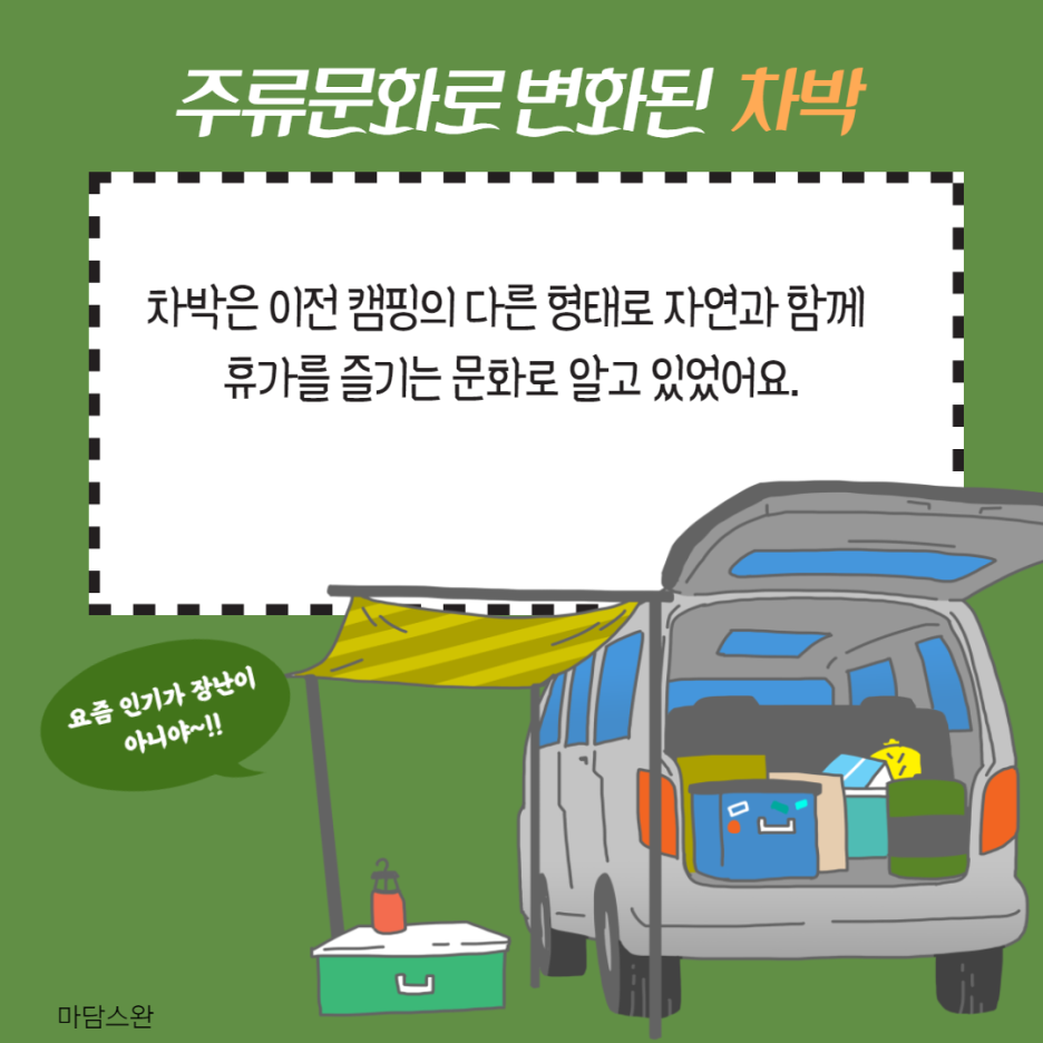 차 박은 캠핑의 다른 형태로 자연과 함께 휴가를 즐기는 문화로