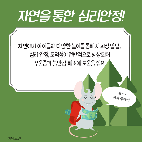 자연에서 아이 들고 다양한 놀이를 통해 사회성 발달, 심리 안정, 도덕성이