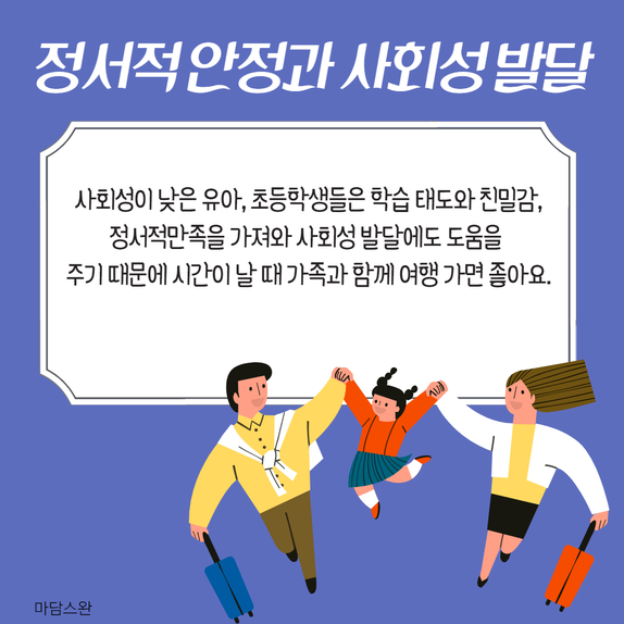 사회성 발달에도 도움을 주기 때문에 시간이 날 때 가족과 함께 여행 가면 좋겠죠? ㅎㅎ