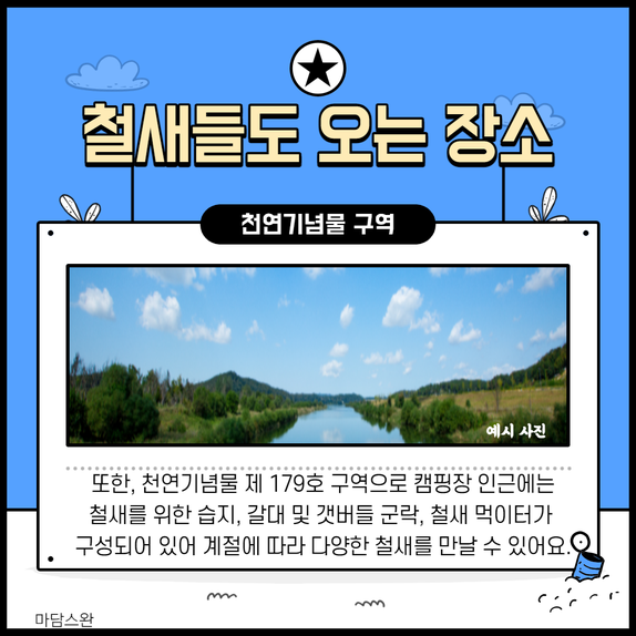 천연기념물 제179호 구역으로 캠핑장 인근에는 철새를 위한 습지,