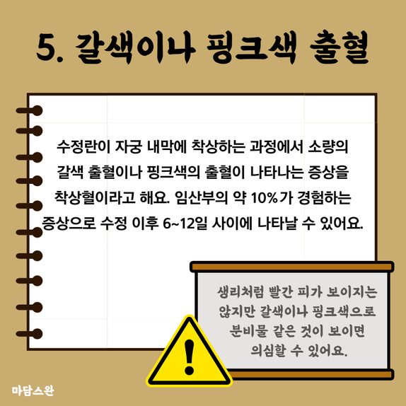생리처럼 빨간 피가 보이지는 않지만 갈색이나 핑크색으로
