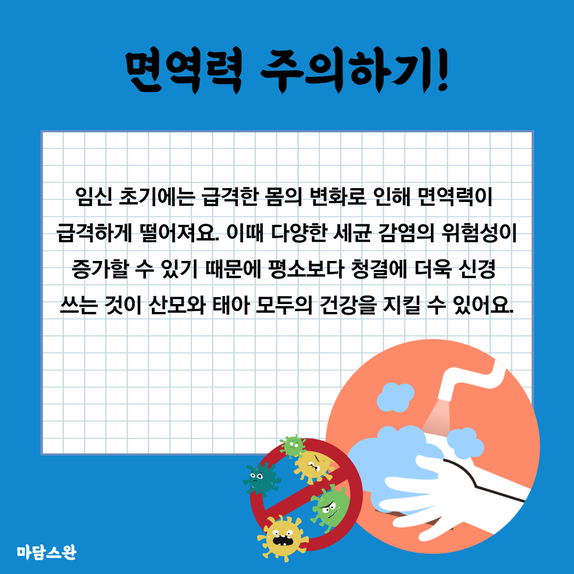 임신 초기에는 급격한 몸의 변화로 인해 면역력이 급격하게 떨어져요.