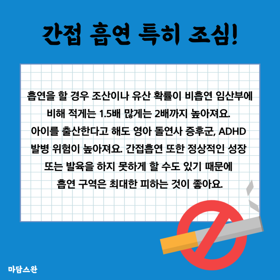 흡연을 할 경우 조산이나 유산 확률이 비흡연 임산부에 비해 적게는 1.5배