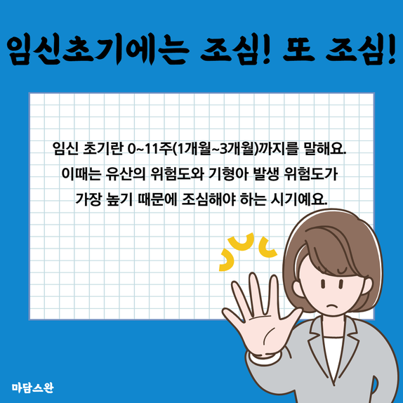 기형 유발 가능성이 높아지기 때문에 초기에는 피하는 것을 추천해요.