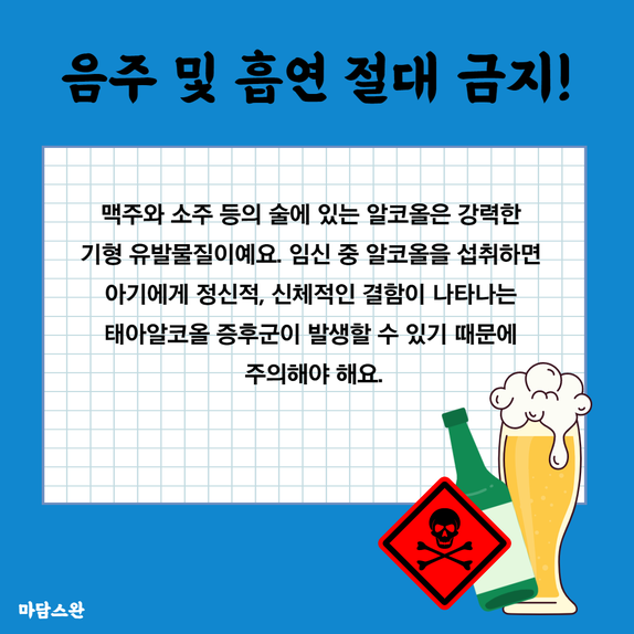 태아알코올 증후군이 발생할 수 있기 때문에 주의해야 해요.
