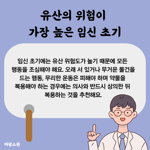 임신 초기에는 유산 위험도가 높기 때문에 모든 행동을 조심해야 해요.