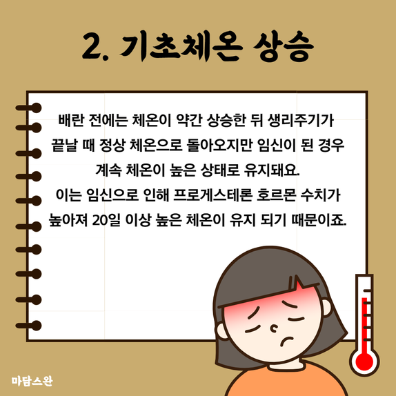 이는 임신으로 인해 프로게스테론 호르몬 수치가 높아져 20일 이상 높은