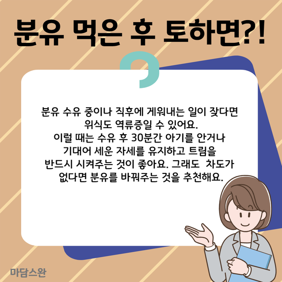 분유 수유 중이나 직후에 게워내는 일이 잦다면 위식도 역류증일 수 있어요.