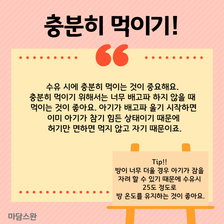 수유 시 25도 정도로 방 온도를 유지하는 것이 좋아요 :)