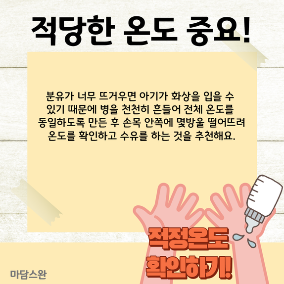 몇 방울 떨어뜨려 온도를 확인하고 수유를 하는 것을 추천해요.