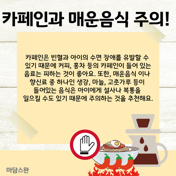 카페인은 빈혈과 아이의 수면 장애를 유발할 수 있기 때문에
