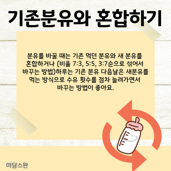 ( 비율 7:3, 5:5, 3:7 순으로 섞어서 바꾸는 방법)하루는 기존 분유 다음날은
