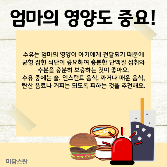 수유 중에는 술, 인스턴트 음식, 짜거나 매운 음식, 탄산음료나 커피는