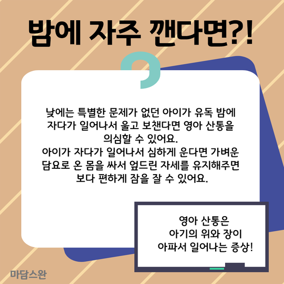 영아 산통은 아기의 위와 장이 아파서 일어나는 증상이에요.