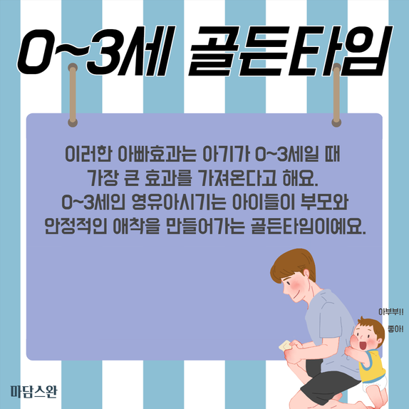 이러한 아빠효과는 아기가 0~3세일 때 가장 큰 효과를 가져온다고 해요.