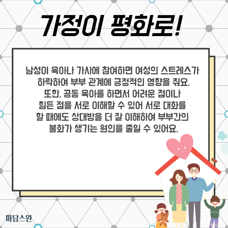 남성이 육아나 가사에 참여하면 여성의 스트레스가 하락하여 부부 관계에