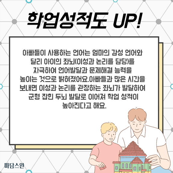 아빠들이 사용하는 언어는 엄마의 감성 언어와 달리 아이의 좌뇌(이성과 논리를 담당)를